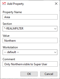 - (Optional) Define a [*-REALMFILTER] section containing the names and areas that should be visible with a super-user is signed in.