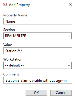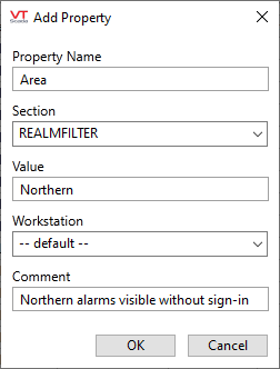 - (Optional) Define a [RealmFilter] section containing names or areas whose alarms should be visible when no user is signed in.