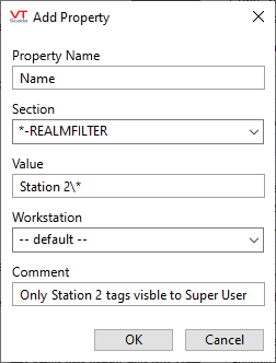 Realm filtering is most often used for larger applications where there users should be restricted to access tags or alarms from one part of the application but not another. Use Realm tag filtering to specify: