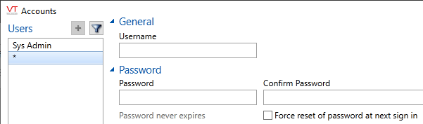 An asterisk will appear in the user list, marking a place for the new account or role.