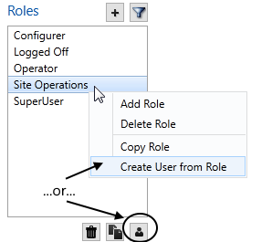 - Right-click on the role to copy and from the menu, select "Create User From Role" or, select the role then click the Copy button at the bottom of the list.