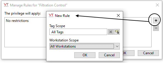 A "rule" is defined as a limit placed on a privilege. The operator may have the privilege of operating a pump, but only pumps under one context (station or site) within the Tag Browser. Or, only when signed-in at a certain workstation.