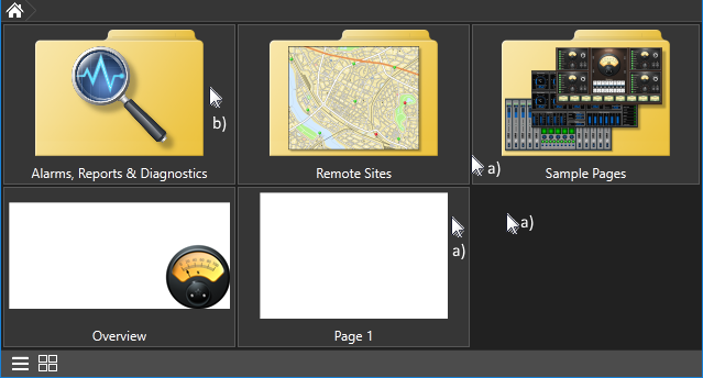 Folders help you organize your page menu into fly-out or cascading menus, gathering pages into logical groups. When using the tiled menu, you can monitor the pages within the folder on one screen.