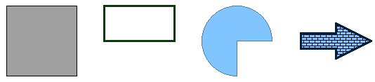 Shapes are geometric objects. Like images, they are used to provide visual context for a page. Shapes include rectangles, ellipses, stars and more. All shapes have an outline and most have a fill, both of which can be configured independently as to style, width, and color. You can set either the outline or the fill to "none", removing that part of the shape from the display.