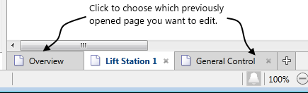 If the page is already open for editing, it will be accessible using the tabs across the bottom of the Idea Studio screen.