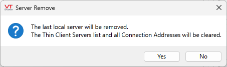 If you attempt to remove the last local server, the entire server list and all related connection addresses will be removed from the local machine.