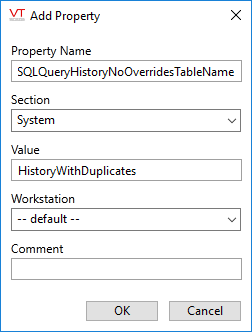 There are situations where different events can be logged to the same tag with an identical timestamp as provided by the I/O device. If this matches your situation, you can tell VTScada to return all the values for that timestamp by adding the property, SQLQueryHistoryNoOverridesTableName to your list of application properties and setting the value to a name you wish to use for the table in your queries.