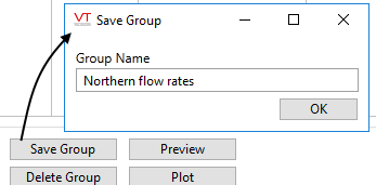 You can create named selection groups of tags to plot. These groups are available for all users in a drop-down menu at the upper-left corner of the Historical Data Viewer. The ability to work with pen groups is controlled by the security privileges Group Modify, Group Save and Group Delete.
