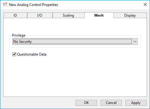 Analog Control properties Merit tab