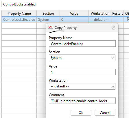 To use the Control Lock system in your application, the ControlLocksEnabled property must be set to 1. Disabling this property will not remove existing locks but will render all locks useless. (They will not prevent tag operation.)