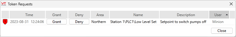 If you hold a token and another user requests control over that tag, you will be presented with the Token Requests dialog: