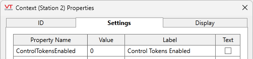 The Control Token system can be enabled globally by setting the application property ControlTokensEnabled to 1. (Configuration Properties) Alternatively, it can be enabled for a specific tag tree (or part thereof) by adding the property to a Context tag (or tag type derived from a Context tag) to enable Control Tokens in child tags of that parent. (You can also disable Control Tokens for a section of a tag tree by adding the property to a parent tag and setting the value to 0.) VTScada will check for ControlTokensEnabled starting with the current tag and working up through the scope of the tag tree to the application in general.