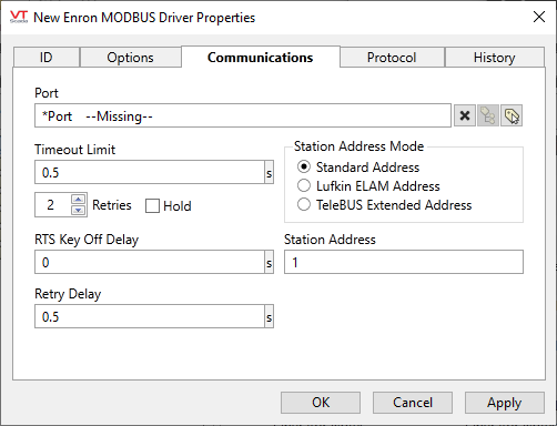 Enron Modbus Driver Configuration - Communications