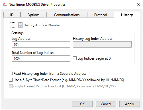Enron Modbus Driver Configuration - History