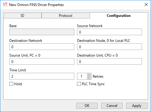 Omron FINS Driver properties Configuration tab