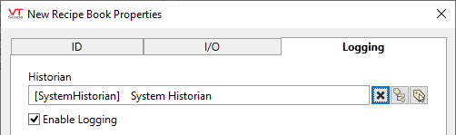 If an Historian tag is selected, this tag's run-time values will be saved for use in reports and the Historical Data Viewer. Historian configuration and advanced logging options are described in the discussion of the Historian Tags.