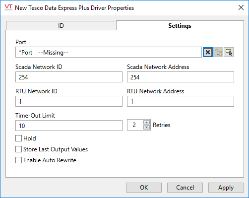 Tesco Driver Tags are available only if your VTScada license includes this option. Contact your Trihedral representative to purchase the required license.