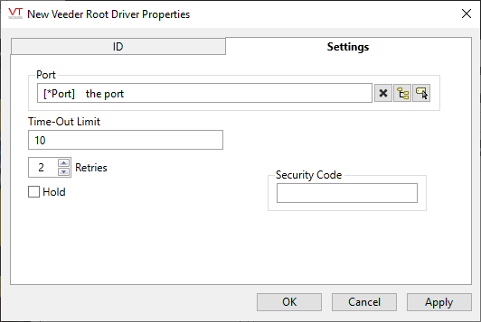Veeder Root Driver properties: Settings tab