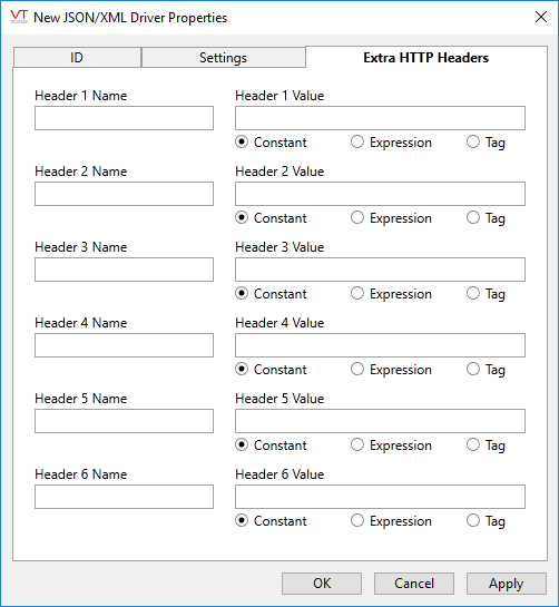 Some URLs may require extra information such as tokens, form data, etc. Use this tab to specify name=value pairs to be added to the JSON or XML URL. Values may be specified here, or supplied from expressions or tags.