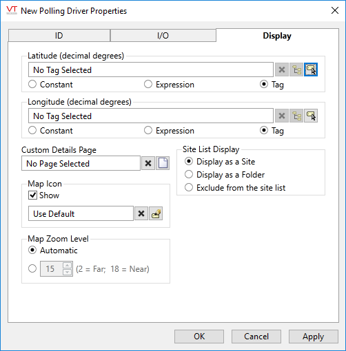 The I/O Device field enables you to specify the communication driver tag for which this polling driver will set the scan rate.
