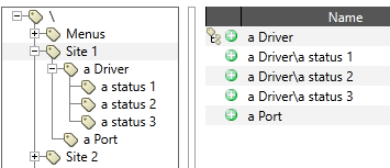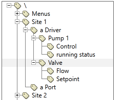 Leaves room for expansion. Each new PLC that you add will have its own site. Here, each "site" tag is a Context tag. The port is a sibling of the driver in this example, but it could as easily be a child.