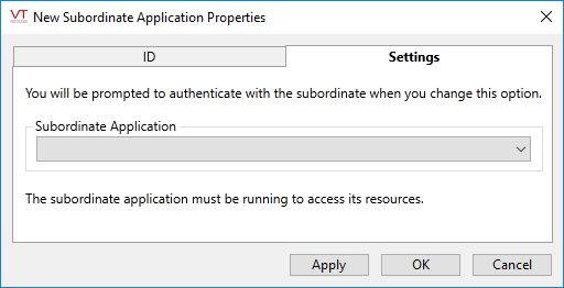 The Settings tab holds a drop-down list, from which you can select the subordinate application.