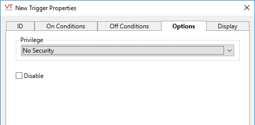 Select the Disable option to deactivate the Trigger tag. Disabling a Trigger tag forces its value to 0.