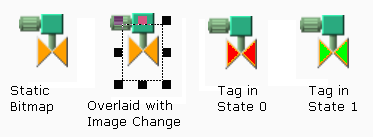 An image change, drawn without a selected image, is a rectangular region that will change color as the linked tag's value changes. The region will be visible only where it is above something drawn using Active Orange (see note, above).