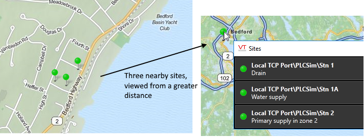 If sites appear to overlap, a click on the pin icon will open a menu of sites near that location. Choose the site that you want to view in more detail.