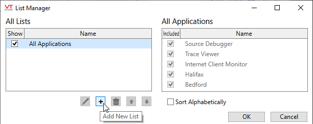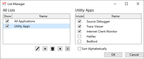 - Within the List Manager, select a list, then select the Sort Alphabetically option to let VTScada reorganize the entries in that list.