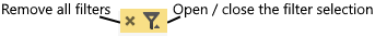 Each applied filter is shown in the filter bar, and can be removed individually by clicking the small "x" beside the filter name. To clear all filters, click the large "X" beside the filter symbol.