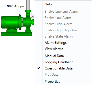 The menu will vary by tag type, but the Properties option will always be there. Other options in this menu open specific pages of the full properties dialog.