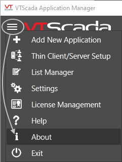 | License Management | Opens the License Management dialogue. Use this to review which features of VTScada are enabled by your license and to deactivate the license on the current workstation before moving it to a new one. |