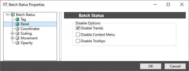 The properties dialog for the Batch Status widget. There are no user-configurable options beyond the standard operator-interface controls.