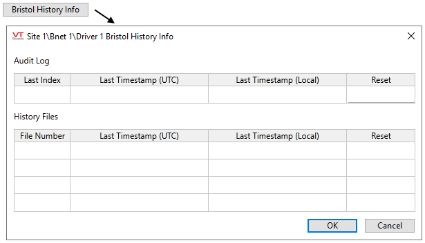This widget creates a button that operators can use to view history about the linked Bristol BSAP/IBP driver.