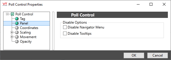 There are no configurable options in the Bristol Poll Control widget other than the standard options for operator-interaction..