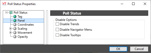 There are no configuration options for the Poll Status widget other than the standard options for operator-interaction.