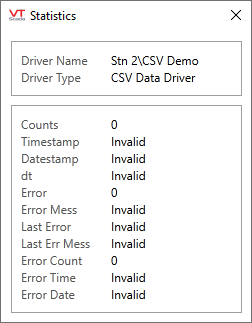 The Show Stats button will display the following information about a CSV Data driver tag: