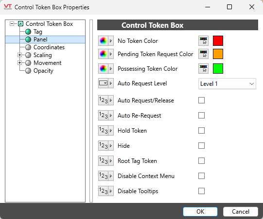 Sets the color of the box when you have requested a Control Token on the linked tag.