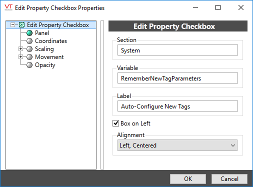 The Edit Property Checkbox widget provides a way for operators to switch a specific property on and off. You choose which property can be edited when configuring the widget. These widgets can allow access to certain properties that need to be updated, without granting operators full access to the Application Properties dialog.
