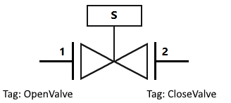 This configuration would consist of the Open button (Set Value button) linked to the 'OpenValve' tag, having 1 as Value to Write and 1 as Feedback Value, from the combined 'Solenoid Feedback' tag (which could be either a PLC address or a calculation tag).