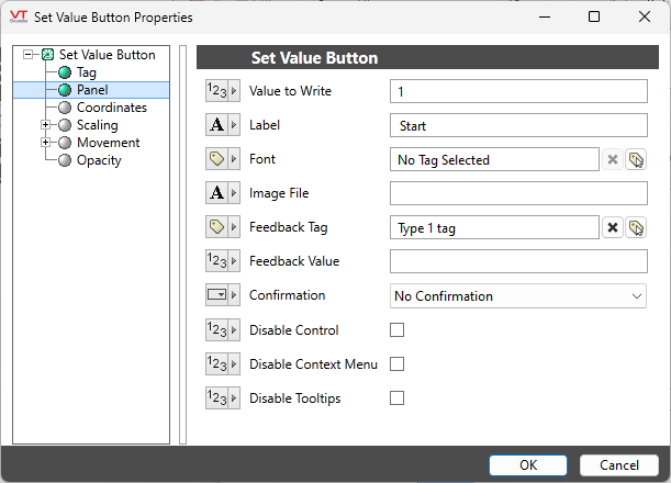 This widget was introduced in VTScada 12.1. For the older version of the button, refer to Legacy Set Value Button Widget.