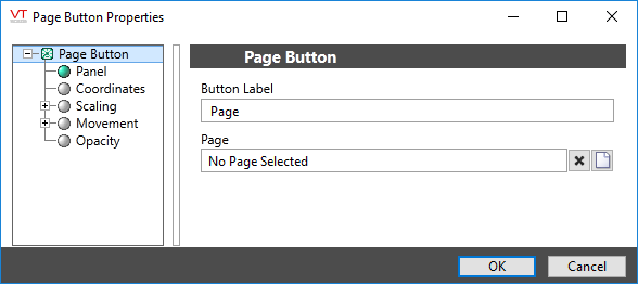 The properties dialog for the Page button widget: