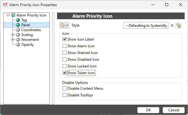 A Token Level Icon is an Alarm Priority Icon, configured to indicate that a Control Token exists and to show the associated Token Level (priority) number.