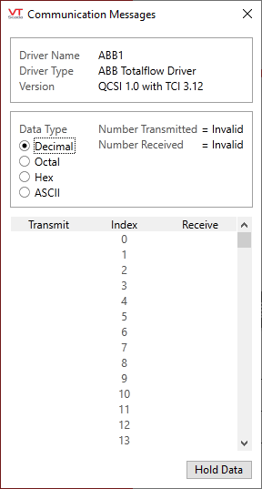 The Comm Messages button will display the following information about an ABB Totalflow driver tag in response to a left-click.