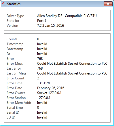 Serial Error The error number (code) for the serial error (if one has occurred).