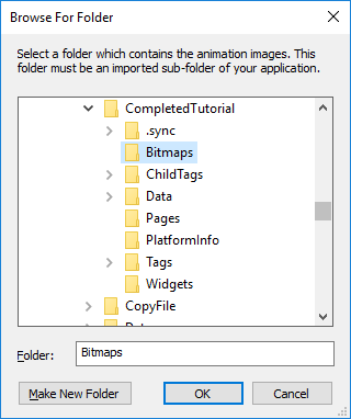 The folder and its files must have previously been imported into your application. Refer to the topic, Adding Custom Animations.