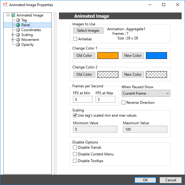 The Animated Image properties dialog will look like the following: