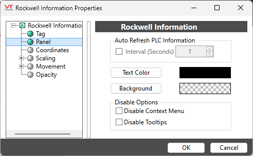 The Rockwell Information properties dialog:
