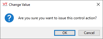 If selected, the operator must confirm the action before a control signal is sent to the PLC. An example of the confirmation dialog follows: